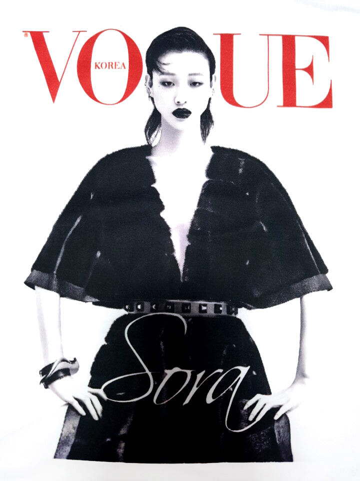 전면에 마치 보그 잡지 메인처럼 모델컷 이미지가 강렬하게 들어간