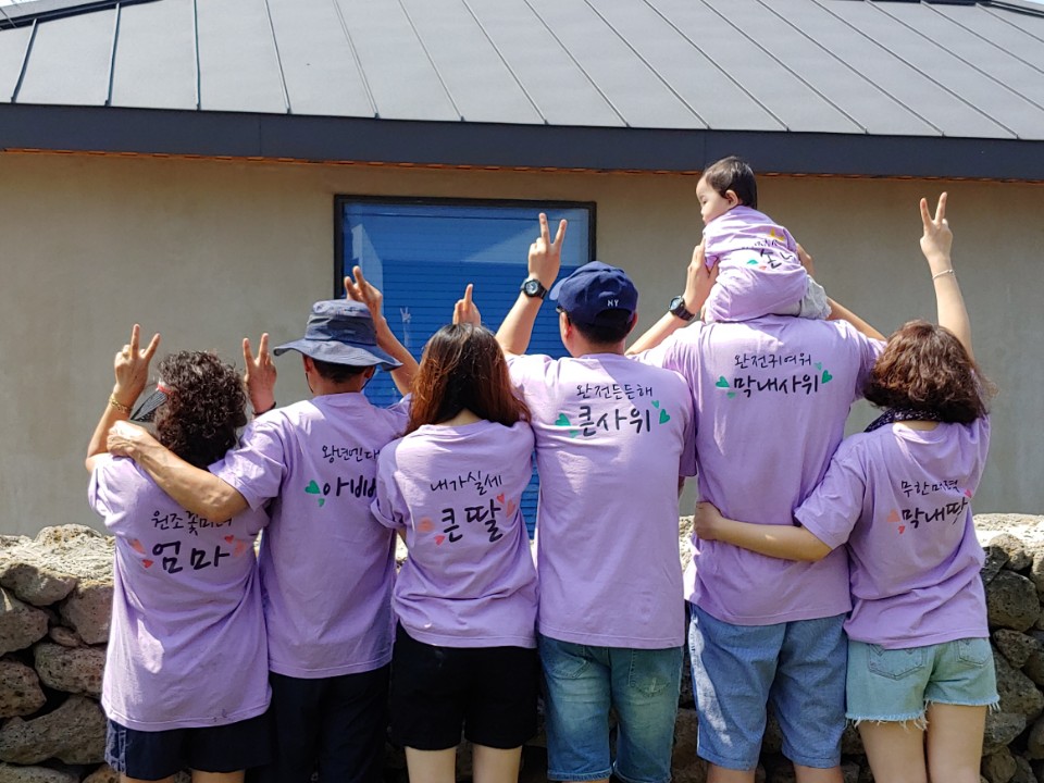 가족티 맞추고 여행가서 사진찍었어...